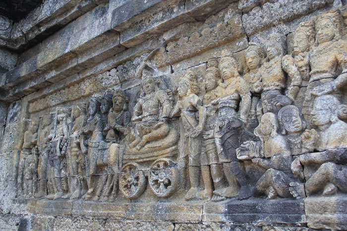 Donderdag 29 januari zijn we vertrokken uit yogjakarta. We hadden opnieuw een binnenlandse vlucht geboekt. Het is zo’n 650 kilometer. We hadden ook met de trein gekund maar die doet er tien tot twaalf uur over en dat is best wel een tijd. Daarbij komt dat we met flink wat bagage zitten en dat gesjouw in deze hitte maakt je niet erg blij. De prijs is ongeveer gelijk dus de keus was snel gemaakt. Ons voltallig personeel (5 stuks) van de villa deed ons uitgeleide op een asndoenlijk lieve manier. Ik kreeg van de dames een omhelzing en zoenen. Wel lief maar ik ben daar eigenlijk niet zo van en we werden uitgezwaaid. Met de taxi reden we richting airport. De taxi stonk verschrikkelijk waar vooral Jasper echt veel last van had. Er was geprobeerd dit een beetje te verhullen door allerlei luchtverfrissers maar dat maakte het in feite alleen maar erger. Indonesie is ook het land van geuren: sommige heel lekker maar vaak ook heel smerig. Ikzelf heb echt last van de geur van mottenballen. Mijn hemel wat een gore, chemische lucht is dat. Ik ruik hem echt overal: vaak vaagjes, maar soms ook heel overheersend. N. En Jasper hebben hier weer minder last van en lachen me uit als ik zeg dat ik ‘het’ weer ruik. De luchthaven van yogjakarta (of Yogja zoals het hier liefkozend wordt genoemd) is niet groot. We waren goed op tijd maar met onze electronische apparatuur is iedere wachttijd goed door te komen. N. En Jasper op de i-pad, ik met mijn e-reader. Dat is toch een geweldig apparaat. Ik heb nog keuze uit 543 ongelezen boeken. De vlucht was kort, zo’n 55 minuten maar netjes gecatered. Broodje, cake, snoepje, drankjes, prima.